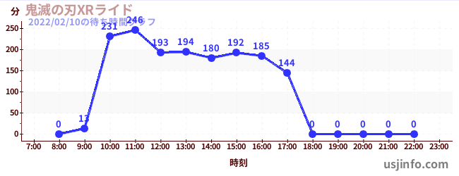 • 鬼滅の刃XRライド$B$N(B2022年02月10日の待ち時間