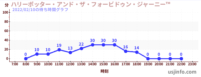 • ハリーポッター・アンド・ザ・フォービドゥン・ジャーニー™$B$N(B2022年02月10日の待ち時間