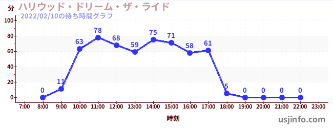 • ハリウッド・ドリーム・ザ・ライド$B$N(B2022年02月10日の待ち時間