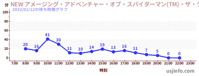 • NEW アメージング・アドベンチャー・オブ・スパイダーマン(TM)・ザ・ライド 4K3D$B$N(B2022年02月12日の待ち時間