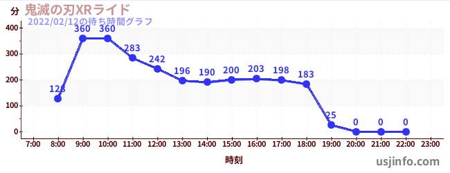 • 鬼滅の刃XRライド$B$N(B2022年02月12日の待ち時間