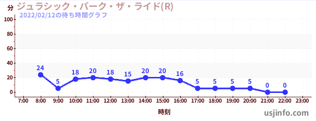 • ジュラシック・パーク・ザ・ライド(R)$B$N(B2022年02月12日の待ち時間