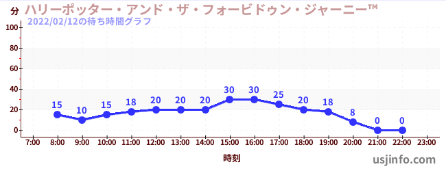 • ハリーポッター・アンド・ザ・フォービドゥン・ジャーニー™$B$N(B2022年02月12日の待ち時間