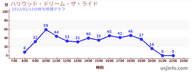 • ハリウッド・ドリーム・ザ・ライド$B$N(B2022年02月12日の待ち時間