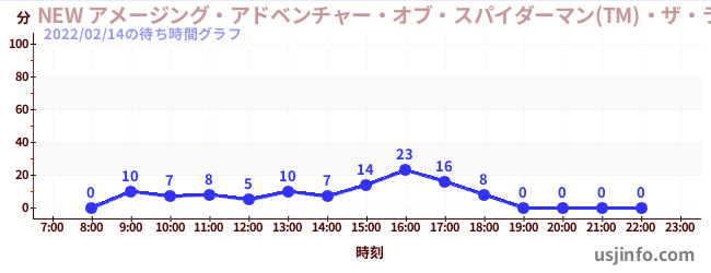 • NEW アメージング・アドベンチャー・オブ・スパイダーマン(TM)・ザ・ライド 4K3D$B$N(B2022年02月14日の待ち時間