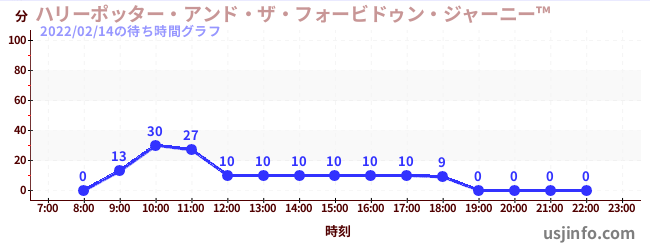• ハリーポッター・アンド・ザ・フォービドゥン・ジャーニー™$B$N(B2022年02月14日の待ち時間