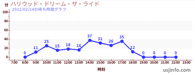 • ハリウッド・ドリーム・ザ・ライド$B$N(B2022年02月14日の待ち時間