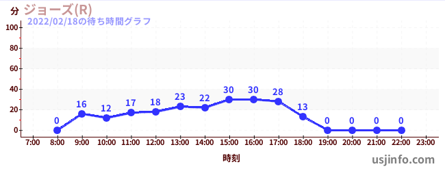 • ジョーズ(R)$B$N(B2022年02月18日の待ち時間