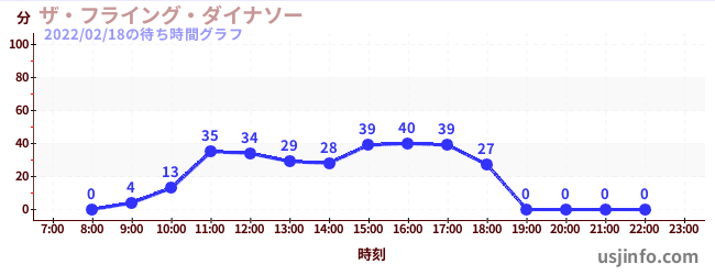 • ザ・フライング・ダイナソー$B$N(B2022年02月18日の待ち時間