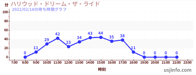 • ハリウッド・ドリーム・ザ・ライド$B$N(B2022年02月18日の待ち時間