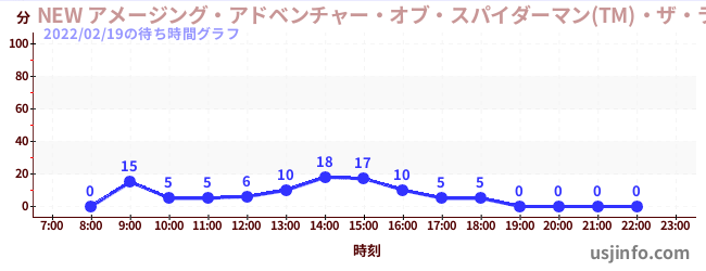 • NEW アメージング・アドベンチャー・オブ・スパイダーマン(TM)・ザ・ライド 4K3D$B$N(B2022年02月19日の待ち時間