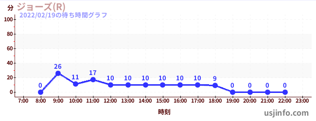 • ジョーズ(R)$B$N(B2022年02月19日の待ち時間