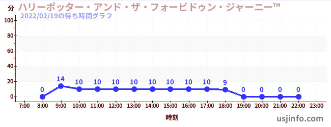 • ハリーポッター・アンド・ザ・フォービドゥン・ジャーニー™$B$N(B2022年02月19日の待ち時間