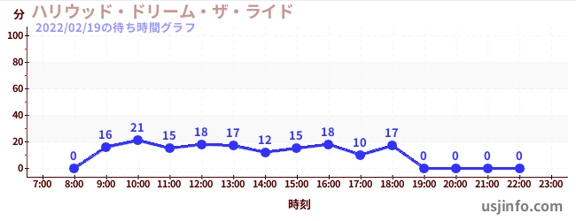 • ハリウッド・ドリーム・ザ・ライド$B$N(B2022年02月19日の待ち時間