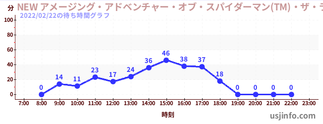 • NEW アメージング・アドベンチャー・オブ・スパイダーマン(TM)・ザ・ライド 4K3D$B$N(B2022年02月22日の待ち時間
