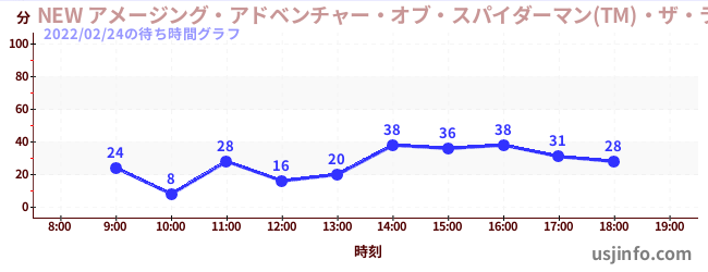 • NEW アメージング・アドベンチャー・オブ・スパイダーマン(TM)・ザ・ライド 4K3D$B$N(B2022年02月24日の待ち時間