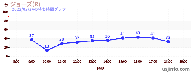 • ジョーズ(R)$B$N(B2022年02月24日の待ち時間