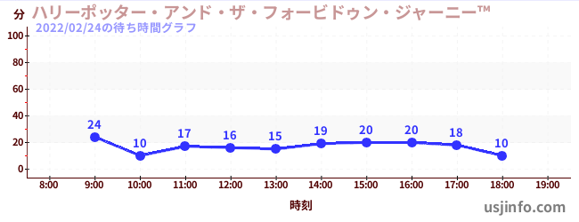 • ハリーポッター・アンド・ザ・フォービドゥン・ジャーニー™$B$N(B2022年02月24日の待ち時間