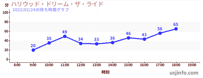 • ハリウッド・ドリーム・ザ・ライド$B$N(B2022年02月24日の待ち時間