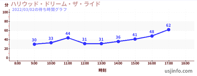 • ハリウッド・ドリーム・ザ・ライド$B$N(B2022年03月02日の待ち時間