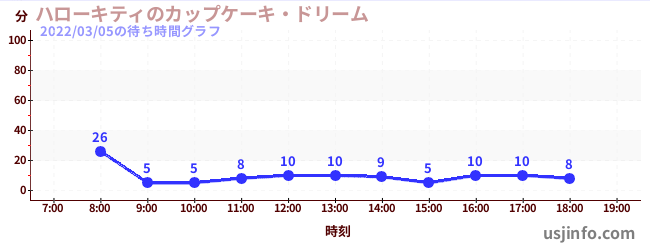 • ハローキティのカップケーキ・ドリーム$B$N(B2022年03月05日の待ち時間