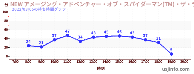 • NEW アメージング・アドベンチャー・オブ・スパイダーマン(TM)・ザ・ライド 4K3D$B$N(B2022年03月05日の待ち時間