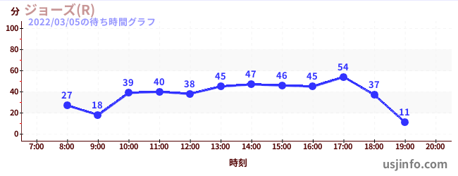 • ジョーズ(R)$B$N(B2022年03月05日の待ち時間