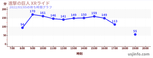 • 進撃の巨人 XRライド$B$N(B2022年03月05日の待ち時間