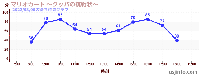 • マリオカート ~クッパの挑戦状~$B$N(B2022年03月05日の待ち時間