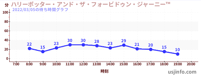 • ハリーポッター・アンド・ザ・フォービドゥン・ジャーニー™$B$N(B2022年03月05日の待ち時間