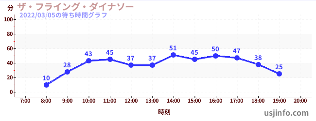 • ザ・フライング・ダイナソー$B$N(B2022年03月05日の待ち時間