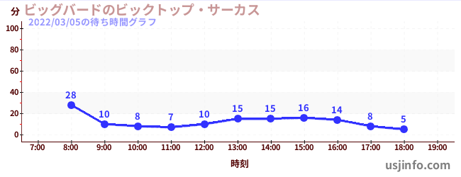 • ビッグバードのビックトップ・サーカス$B$N(B2022年03月05日の待ち時間