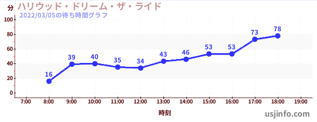 • ハリウッド・ドリーム・ザ・ライド$B$N(B2022年03月05日の待ち時間