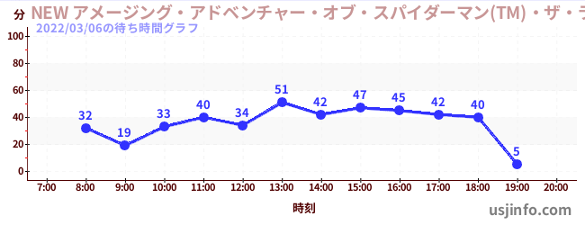 • NEW アメージング・アドベンチャー・オブ・スパイダーマン(TM)・ザ・ライド 4K3D$B$N(B2022年03月06日の待ち時間