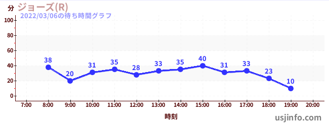 • ジョーズ(R)$B$N(B2022年03月06日の待ち時間
