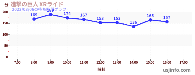 • 進撃の巨人 XRライド$B$N(B2022年03月06日の待ち時間