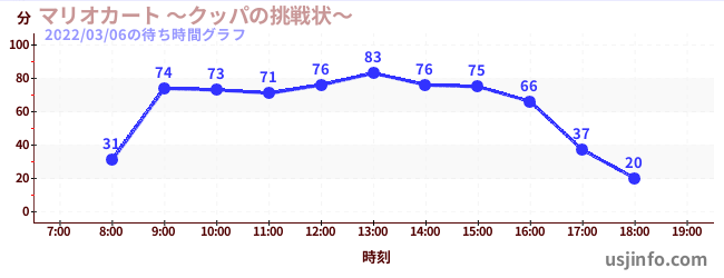 • マリオカート ~クッパの挑戦状~$B$N(B2022年03月06日の待ち時間