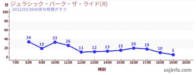 • ジュラシック・パーク・ザ・ライド(R)$B$N(B2022年03月06日の待ち時間