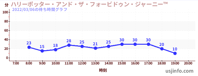 • ハリーポッター・アンド・ザ・フォービドゥン・ジャーニー™$B$N(B2022年03月06日の待ち時間