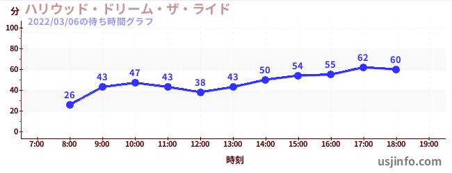 • ハリウッド・ドリーム・ザ・ライド$B$N(B2022年03月06日の待ち時間