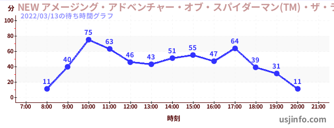 • NEW アメージング・アドベンチャー・オブ・スパイダーマン(TM)・ザ・ライド 4K3D$B$N(B2022年03月13日の待ち時間