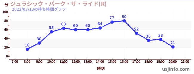 • ジョーズ(R)$B$N(B2022年03月13日の待ち時間