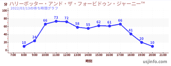 • ハリーポッター・アンド・ザ・フォービドゥン・ジャーニー™$B$N(B2022年03月13日の待ち時間