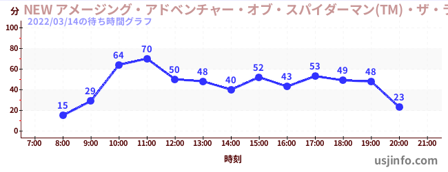 • NEW アメージング・アドベンチャー・オブ・スパイダーマン(TM)・ザ・ライド 4K3D$B$N(B2022年03月14日の待ち時間