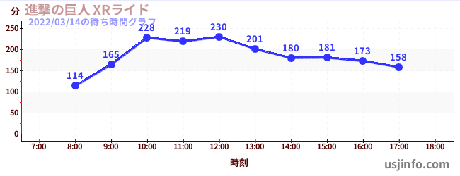 • 進撃の巨人 XRライド$B$N(B2022年03月14日の待ち時間