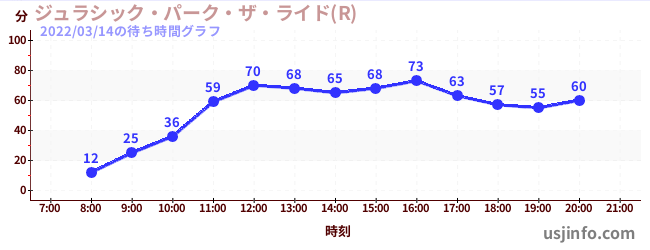 • ジュラシック・パーク・ザ・ライド(R)$B$N(B2022年03月14日の待ち時間