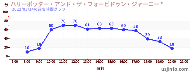 • ハリーポッター・アンド・ザ・フォービドゥン・ジャーニー™$B$N(B2022年03月14日の待ち時間