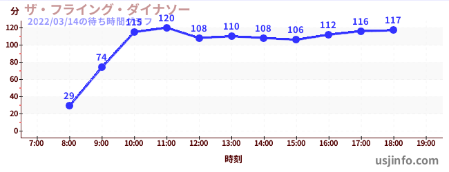 • ザ・フライング・ダイナソー$B$N(B2022年03月14日の待ち時間