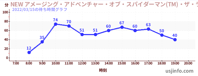 • NEW アメージング・アドベンチャー・オブ・スパイダーマン(TM)・ザ・ライド 4K3D$B$N(B2022年03月15日の待ち時間