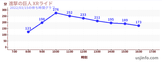• 進撃の巨人 XRライド$B$N(B2022年03月15日の待ち時間